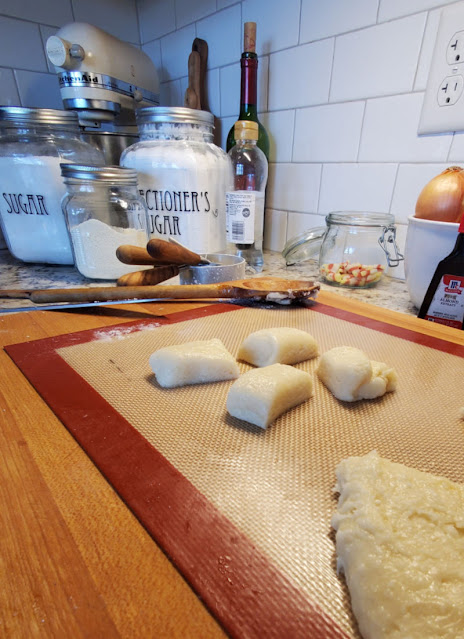 - Remarque: la pâte sèche assez rapidement et sera impossible à rouler. Vous pouvez le zapper au micro-ondes pendant 8 à 10 secondes pour le chauffer afin de le mouler ou de le placer dans un bol sur une casserole d’eau frémissante pour le garder au chaud.