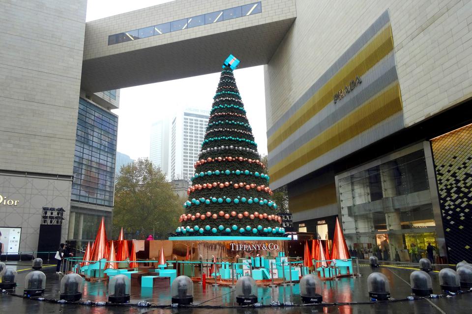 Cartier karácsonyfa kívül egy bevásárlóközpont Nanjing, Jiangsu tartomány Kína. Fotó: Wang … Luxian.