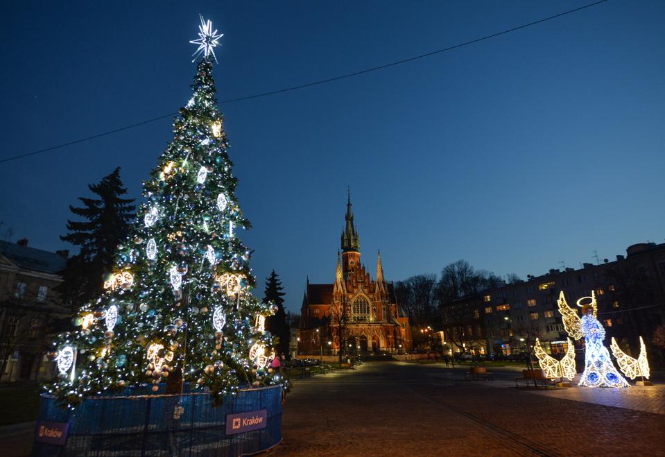 karácsonyfa Krakkóban, Lengyelországban. Fotó: Artur Widak.