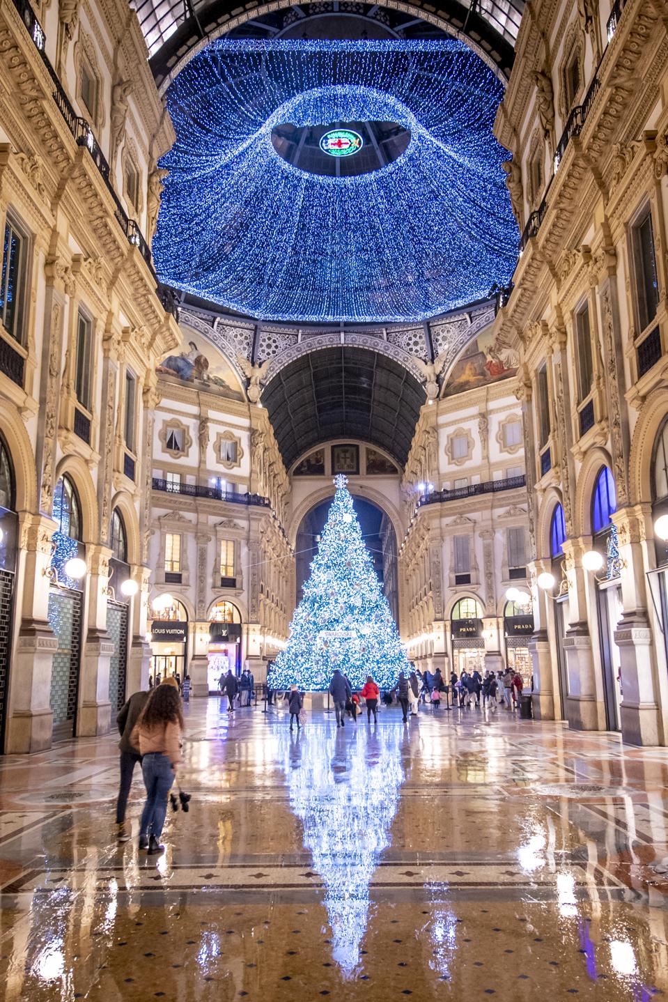 karácsonyfa a Galleria Vittorio Emanuele Milánóban, Olaszországban. Olaszország megtiltotta az utazást és az éjfélt … szentmise a karácsonyi és újévi időszakban, mivel a napi koronavírus-halálesetek száma tovább növekszik. Fotó: Francesco Prandoni.