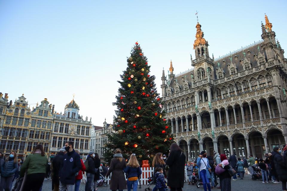a Grand Place díszített karácsonyfa Brüsszelben, Belgium, amelyet díszített … a “megújulás” témája ebben az évben. Fotó: Zheng Huansong.
