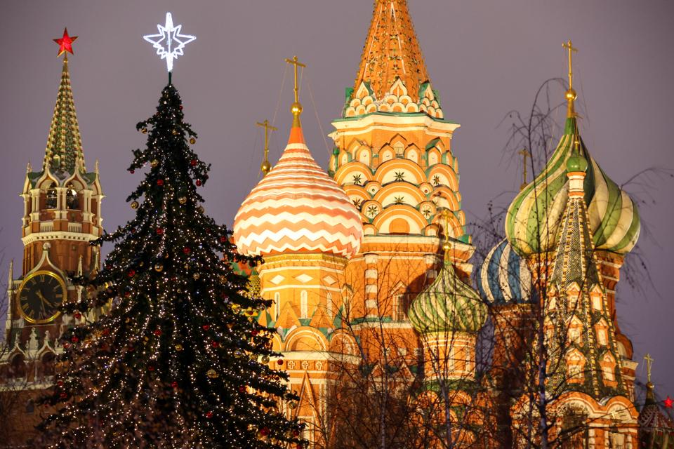 a karácsonyfa közelében Szent Bazil székesegyház Moszkvában. Fotó: Mihail Metzel.