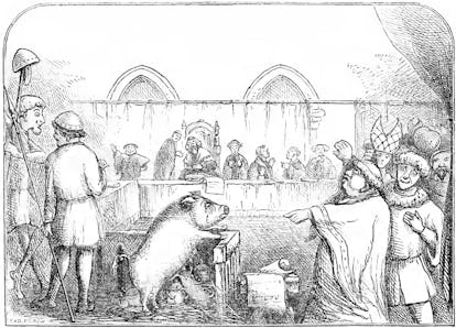 犯罪を犯した動物、特に人間に対する犯罪—maulingや殺人のような—は、すぐに置かれ、その所有者を処罰するのではなく、刑事裁判を受けることがありました( 物事を公正に保つために、動物はまた、ある種の「告白」をするように説得され、弁護士の利益を得て試みられました。 歴史家のグレアム-ニューマンは、絞首刑執行人がこの考えを回避し、子供を殺した裁判なしで雌豚を処刑し、すぐに村の残りの部分に処罰され、梱包を送ったという事件を報告した。 豚のための法廷での日はありませんか? そんなことはできない